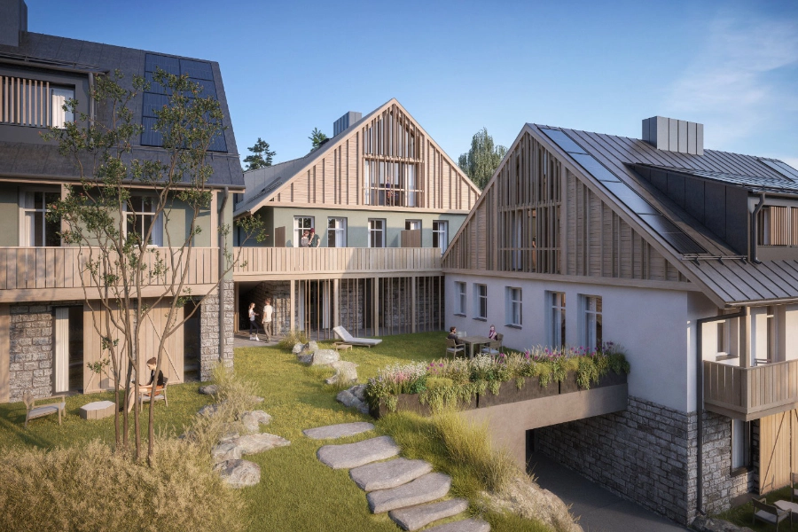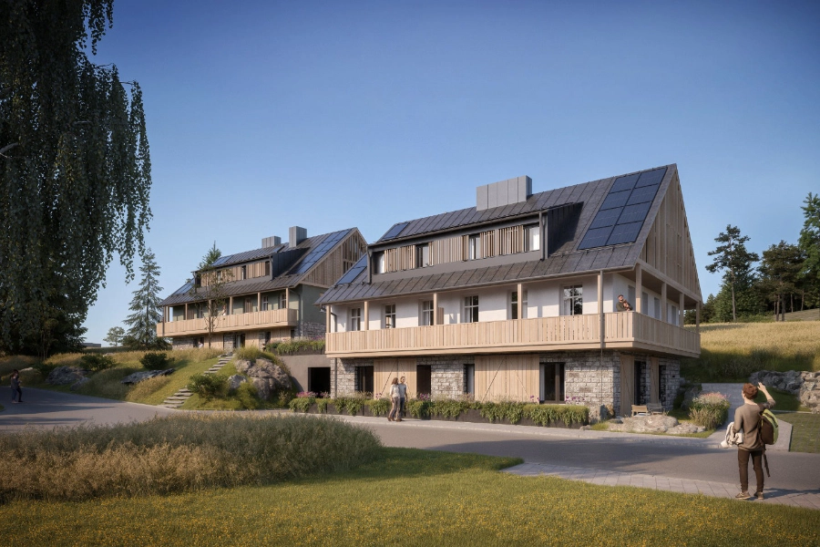 LUKA Hrabětice je posledním projektem svého druhu realizovaným v místě bývalého penzionu, v obci s již vyhlášenou stavební uzávěrou. Architektonická koncepce vychází z původní jizerskohorské architektury, pracuje s tradičními přírodními materiály a současnými provozními nároky bez necitlivých zásahů do krajiny. Soubor 19 moderních apartmánů je rozdělen do tří samostatných domů, přičemž každý apartmán disponuje přímým kontaktem s exteriérem prostřednictvím předzahrádky, terasy nebo balkonu. Návrh usiluje o nadčasovou estetickou hodnotu a dlouhodobou udržitelnost napříč generacemi.